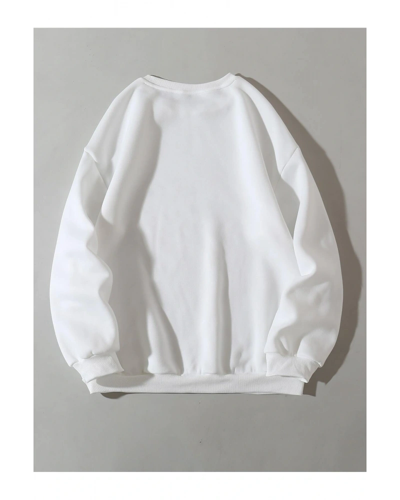 Manfinity EMRG Cartoon And Slogan Graphic Sweatshirt Beyaz