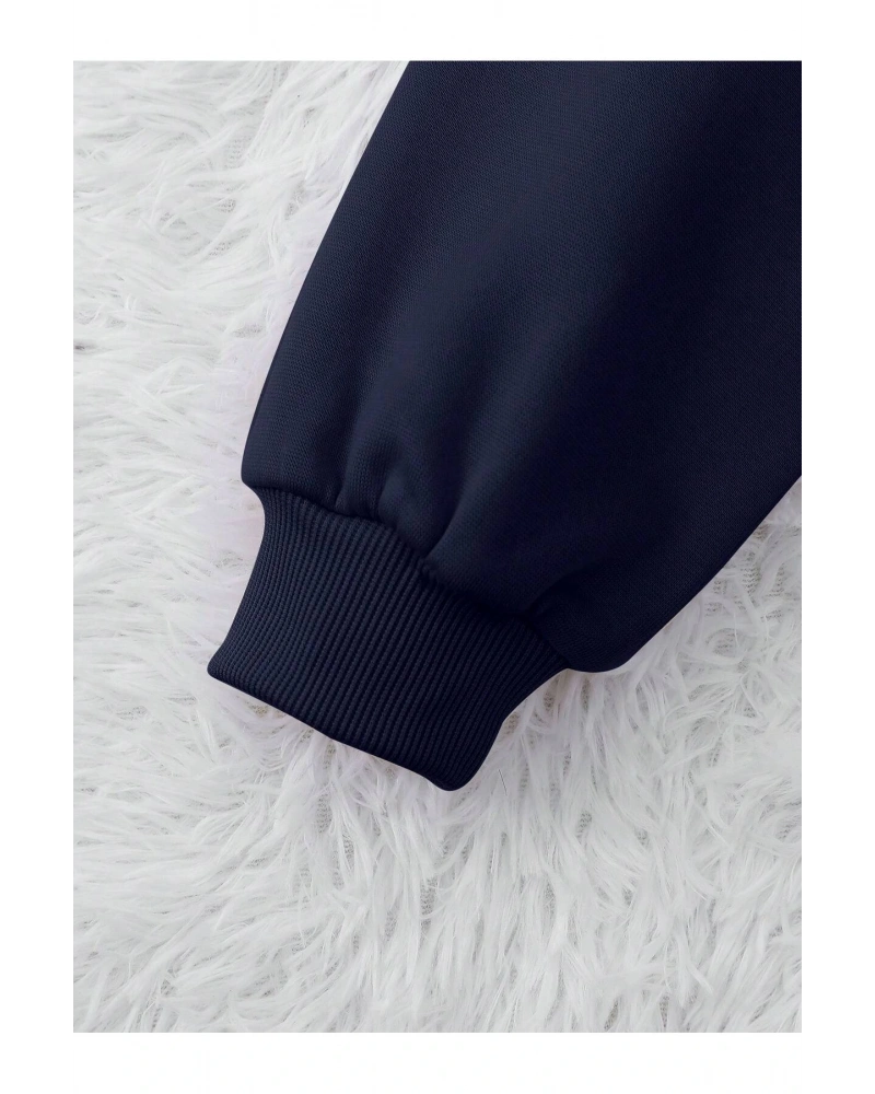 Karikatür & Harf Grafik Düşük Omuz Oversize Sweat Lacivert