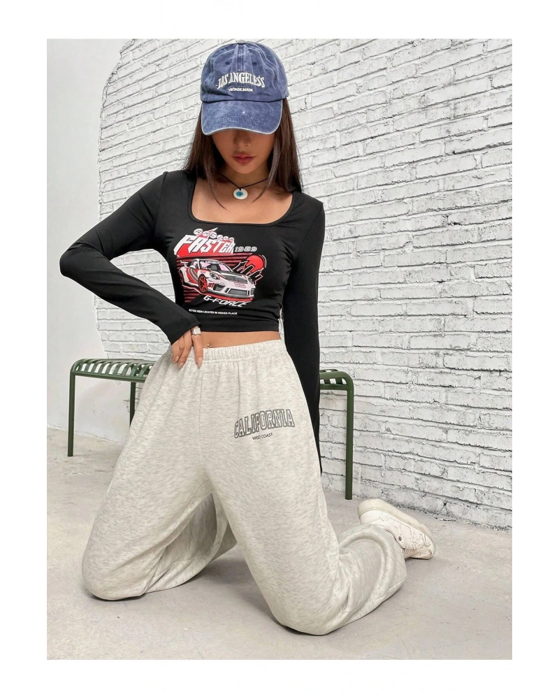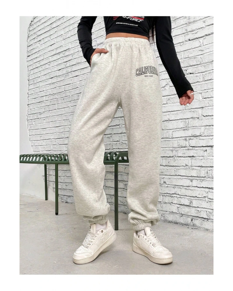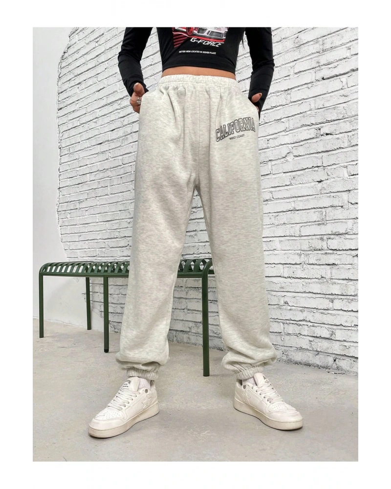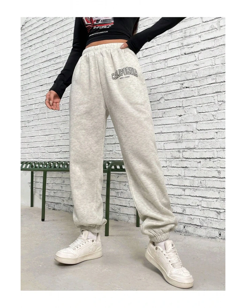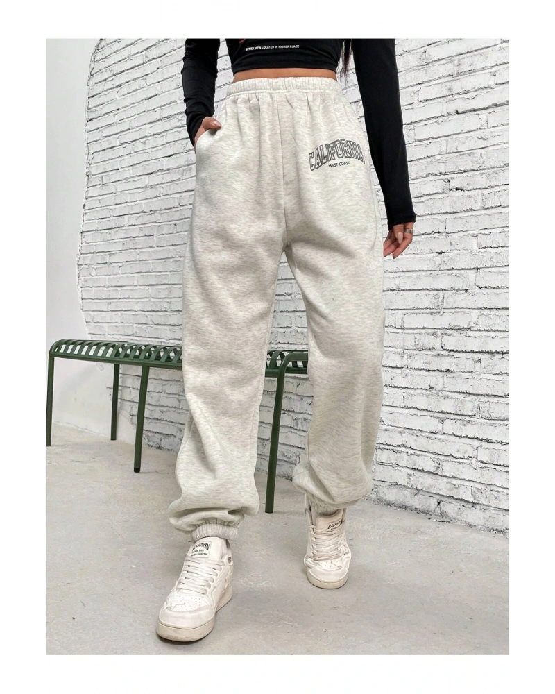 Letter Graphic Elastic Waist 4 Mevsim Eşofman