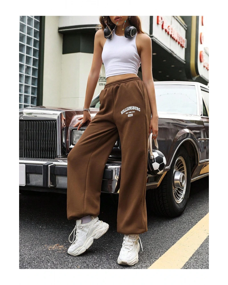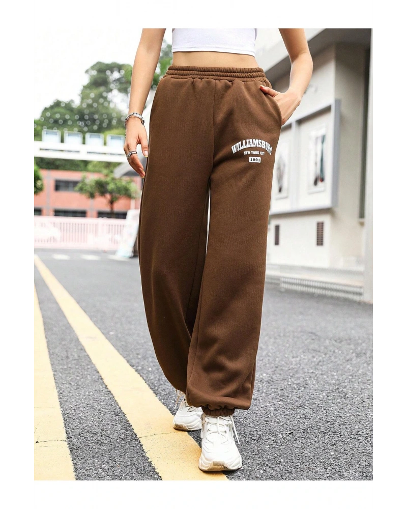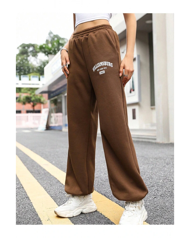 Letter Graphic Elastic Waist 4 Mevsim Eşofman