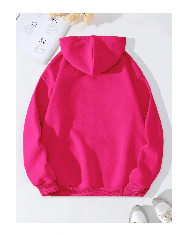 Letter Graphic Kangaroo Pocket Drawstring Lined Hoodie Sweatshirt Pembe