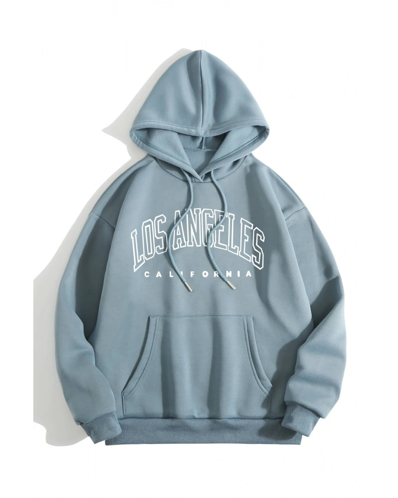 Yasolin----Kadın Gri New Rochelle Baskılı Kapüşonlu Oversize Sweatshirt