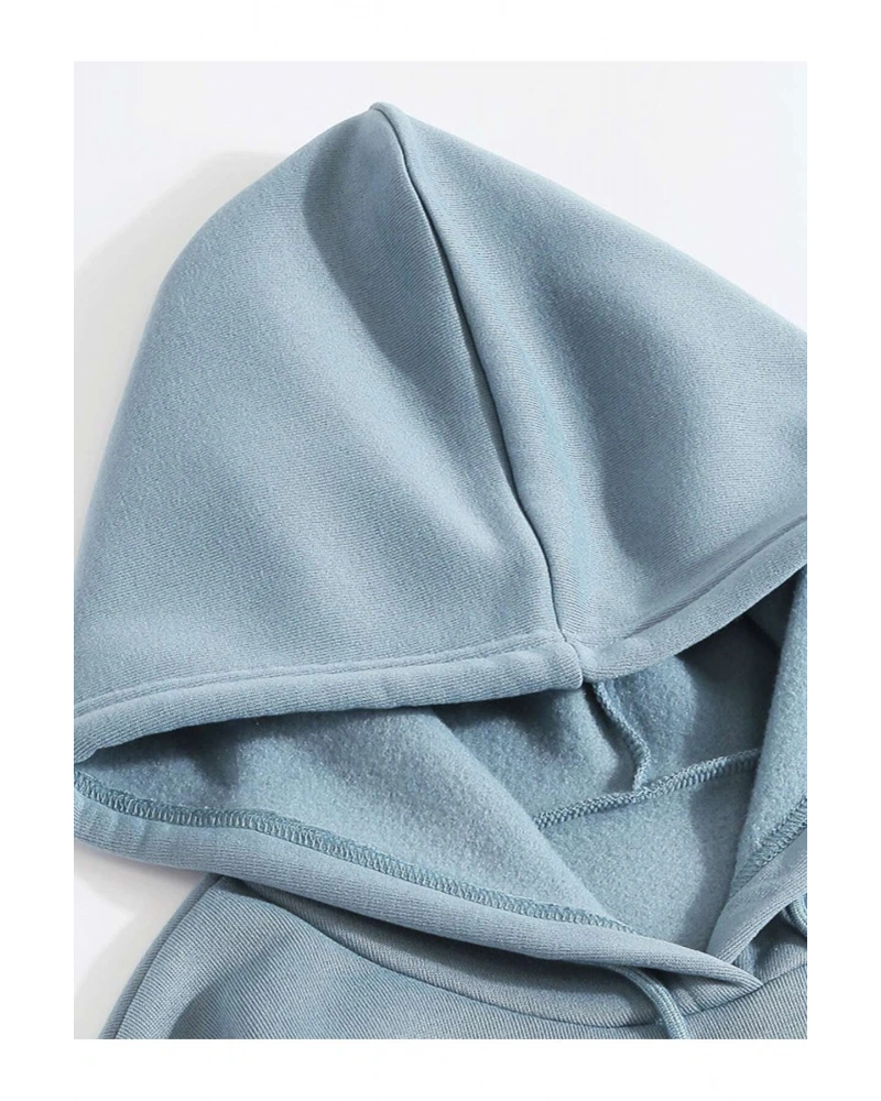 Letter Graphic Kangaroo Pocket Lined Drawstring Hoodie MAVİRENK