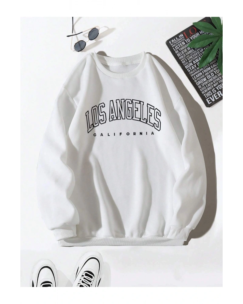 Los Angeles baskılı Üç İplik ünisex oversize Sweatshirt Füme