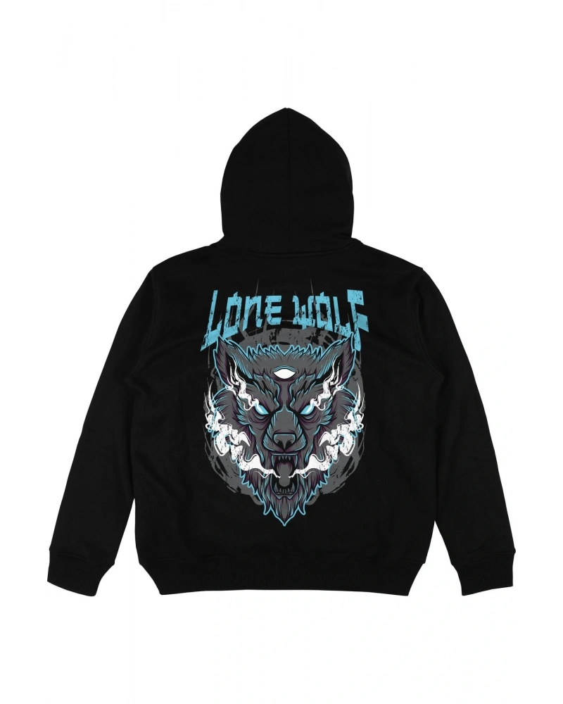 Lone Wolf Siyah Oversize Unisex Kapüşonlu Sweatshirt Hoodie