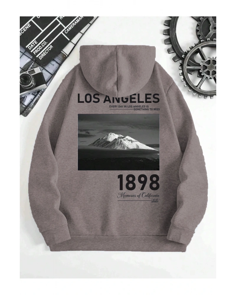Los Angeles baskılı Üç İplik ünisex oversize Sweatshirt Füme