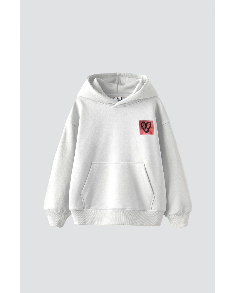 YQYQ----Oversize Mor Saçlı Lila Genç Kız Tasarım Baskılı Unisex Kapüşonlu Sweatshirt Hoodie Beyaz