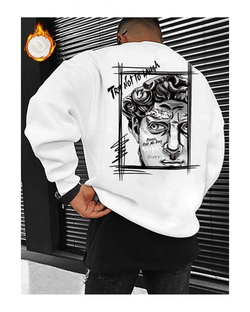 Manfinity EMRG Figure & Letter Graphic Sweatshirt Beyaz
