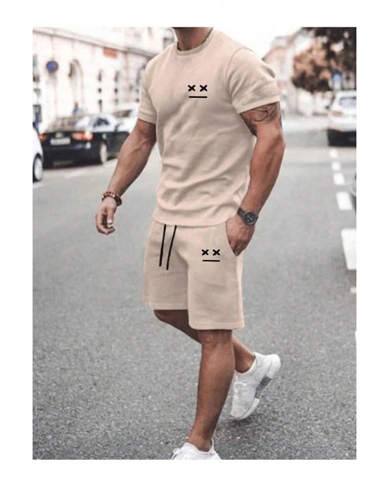 Erkek Günlük Seyahat Kısa Kollu Yuvarlak Yaka Tişört ve Şort Takımı