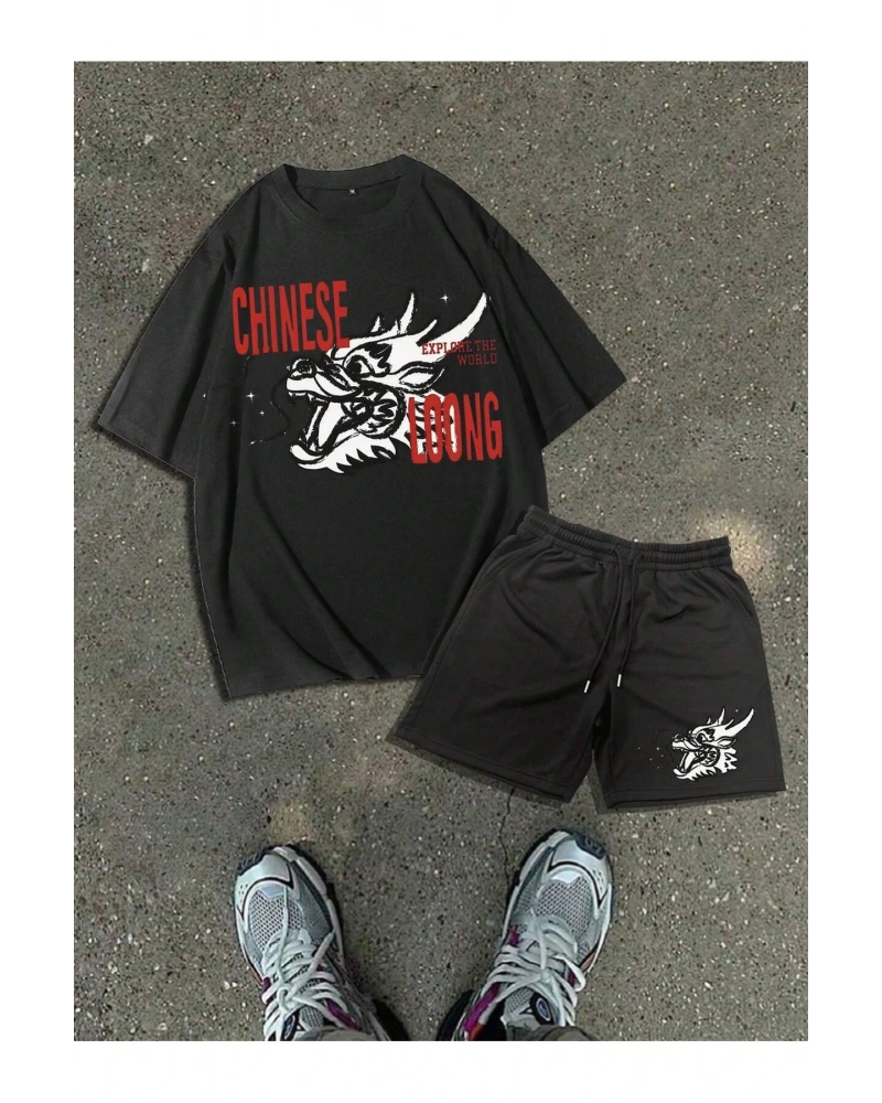 Manfinity Homme Erkek Yazlık Mektup Baskılı Kısa Kollu Tişört ve Şort Takımı