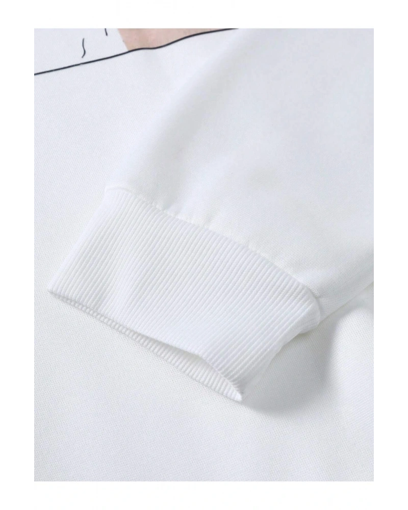 Manfinity EMRG Cartoon And Slogan Graphic Sweatshirt Beyaz