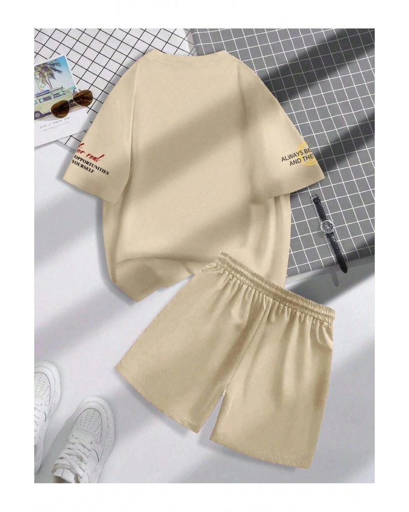 Manfinity Hypemode Erkek Günlük Mektup Baskılı Kısa Kollu Tişört ve Şort TakımıTişört Ve Şort Takımı