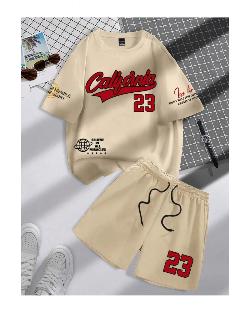Manfinity Homme Erkek Yazlık Mektup Baskılı Kısa Kollu Tişört ve Şort Takımı