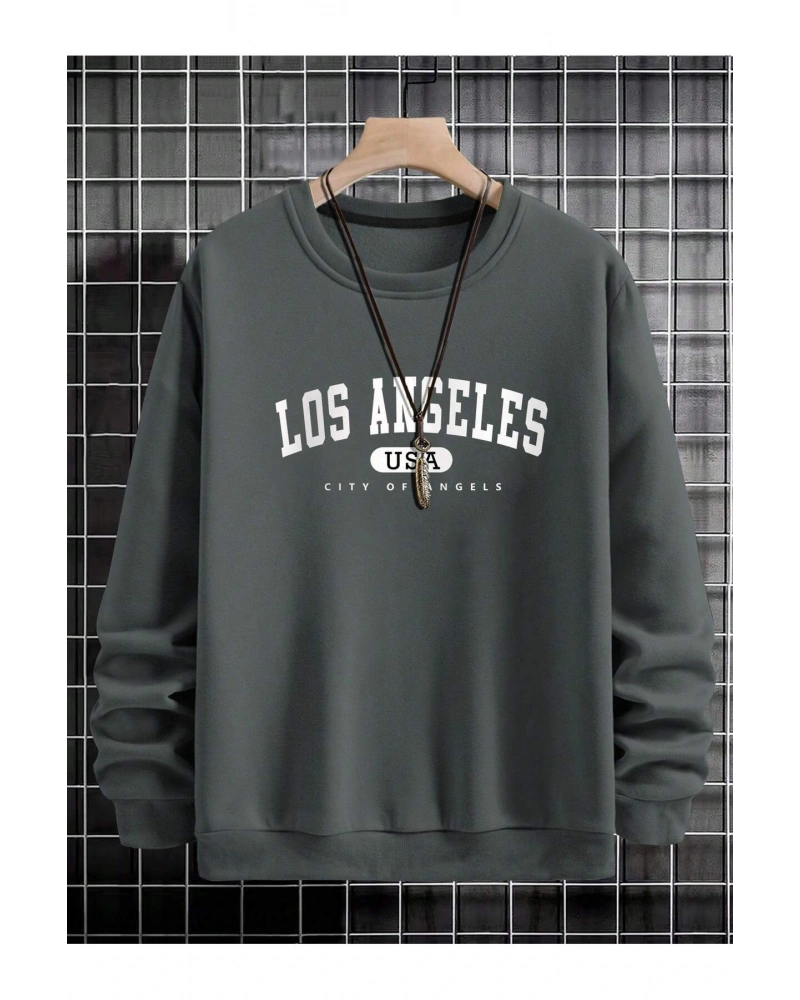Los Angeles baskılı Üç İplik ünisex oversize Sweatshirt Füme