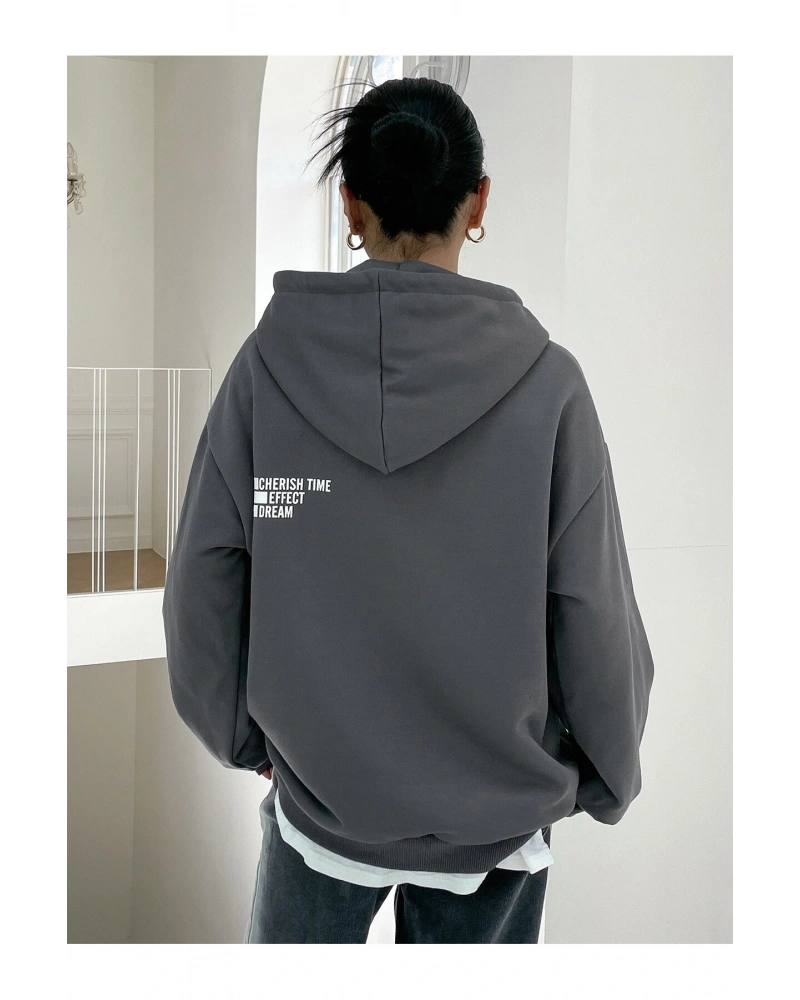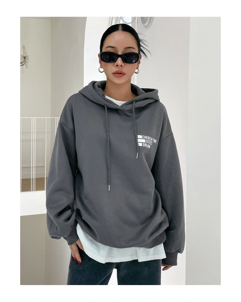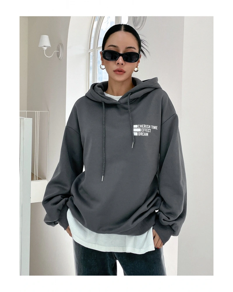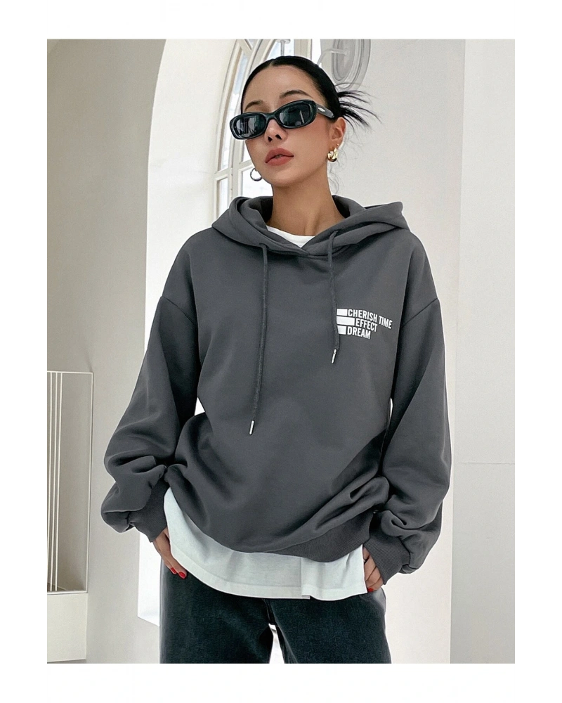 Mektup Grafik Damla Omuz İpli Kapüşonlu Üst Gri