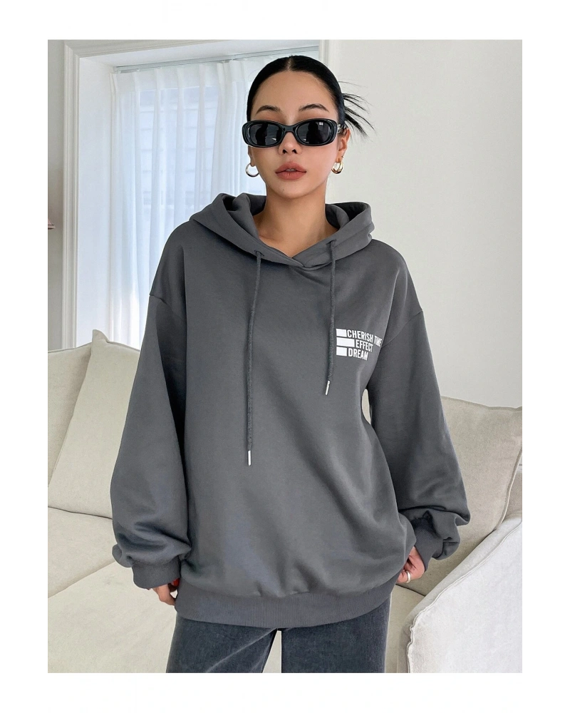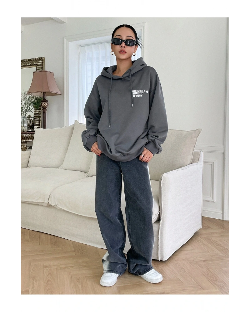 Yasolin----Kadın Gri New Rochelle Baskılı Kapüşonlu Oversize Sweatshirt