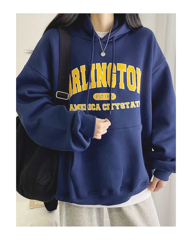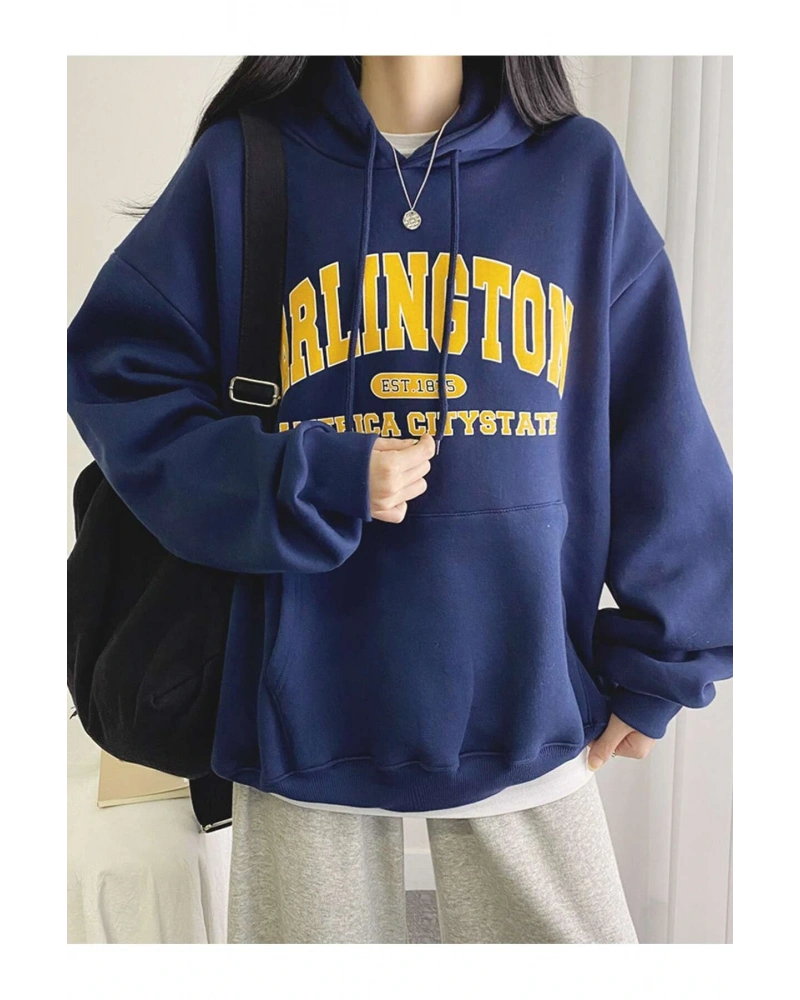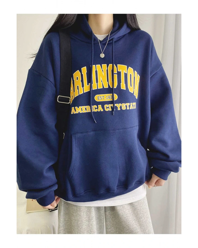 Yasolin----Kadın Gri New Rochelle Baskılı Kapüşonlu Oversize Sweatshirt