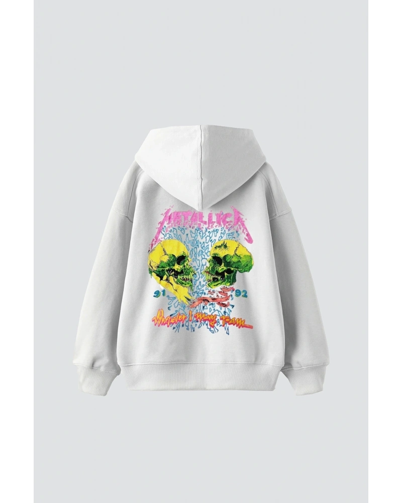 Metallica Skull Baskılı Oversize Unisex Premium Beyaz