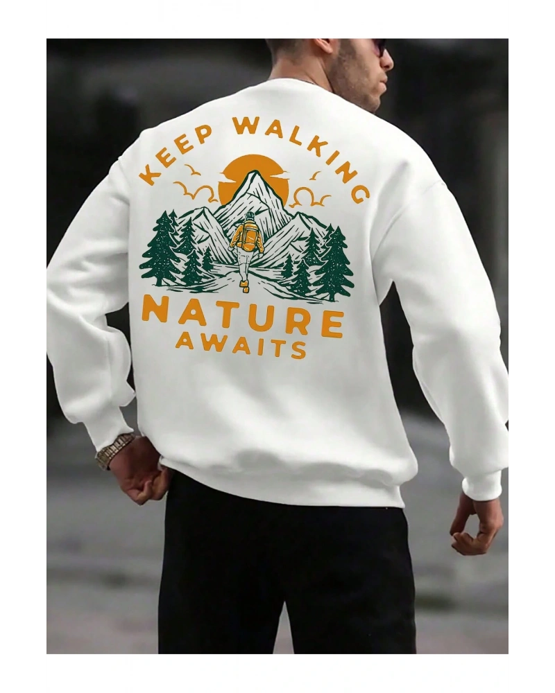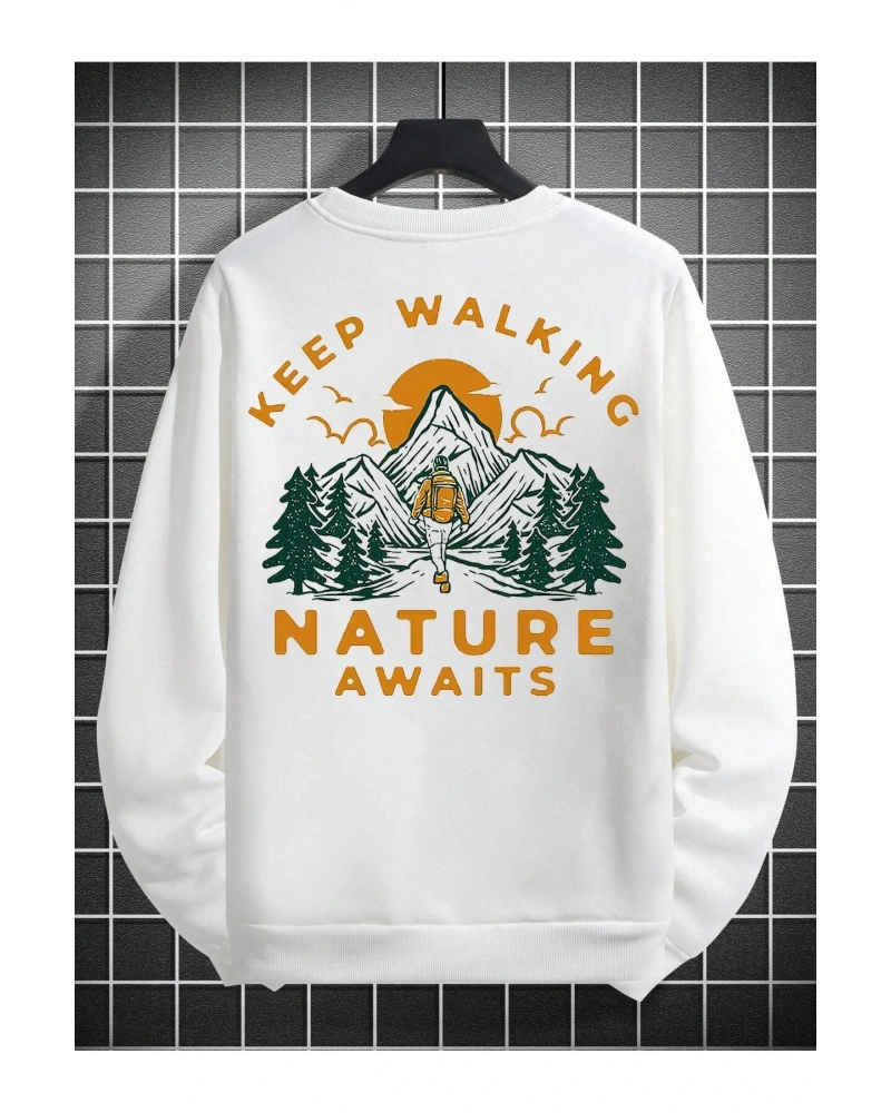 Mountain & Slogan Graphic Drop Shoulder Sweatshirt Beyaz