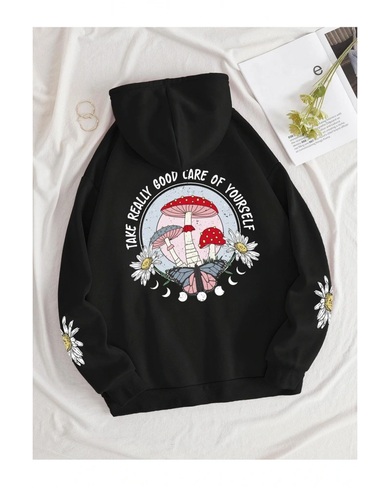 https://www.tarzsokak.com/mushroom-slogan-graphic-kangaroo-pocket-drawstring-hoodie-siyah
