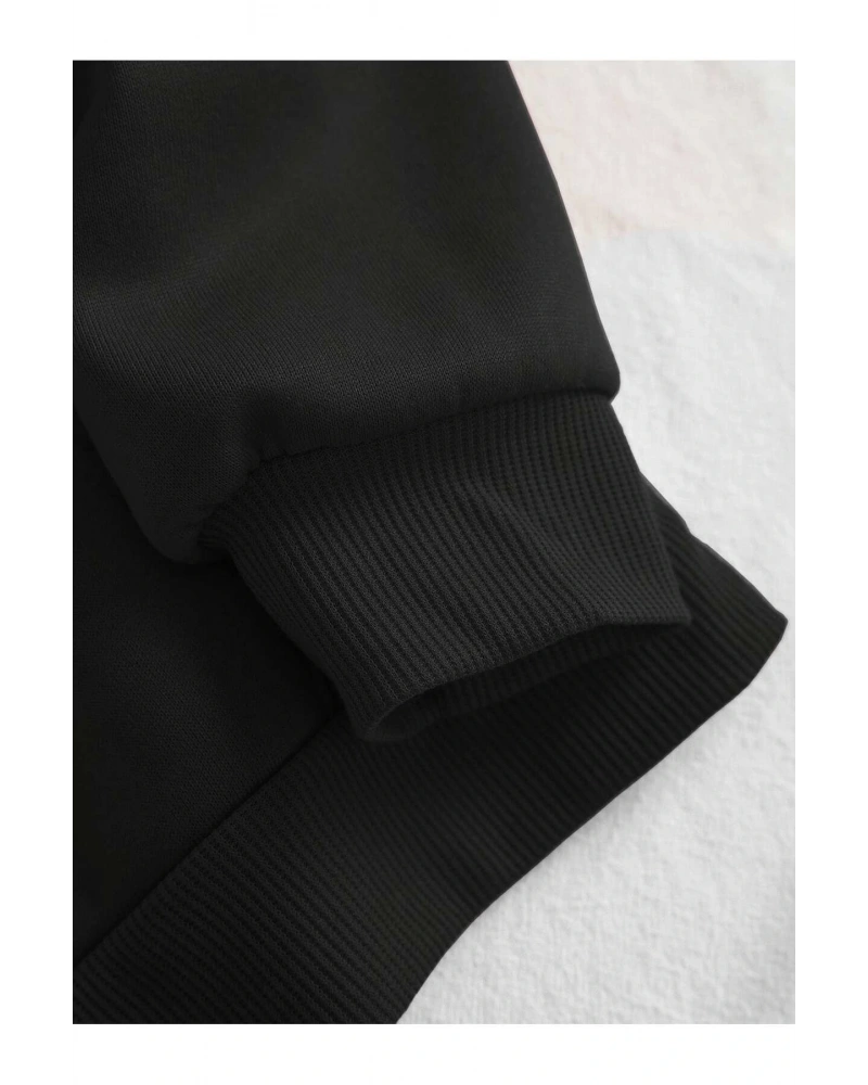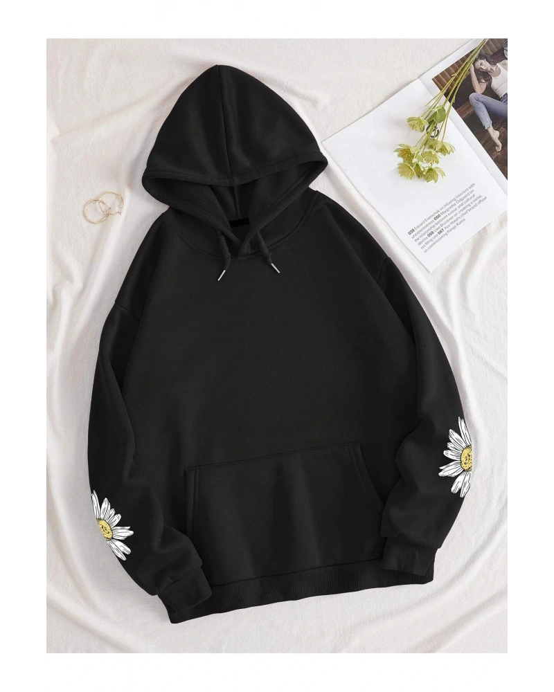 Oversize Unisex Siyah Yaşam Çiçeği Hoodie