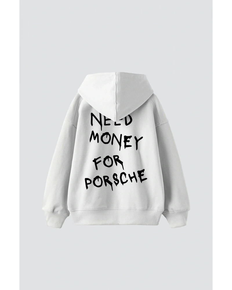 Need Money for Porsche Baskılı Oversize Unisex Beyaz