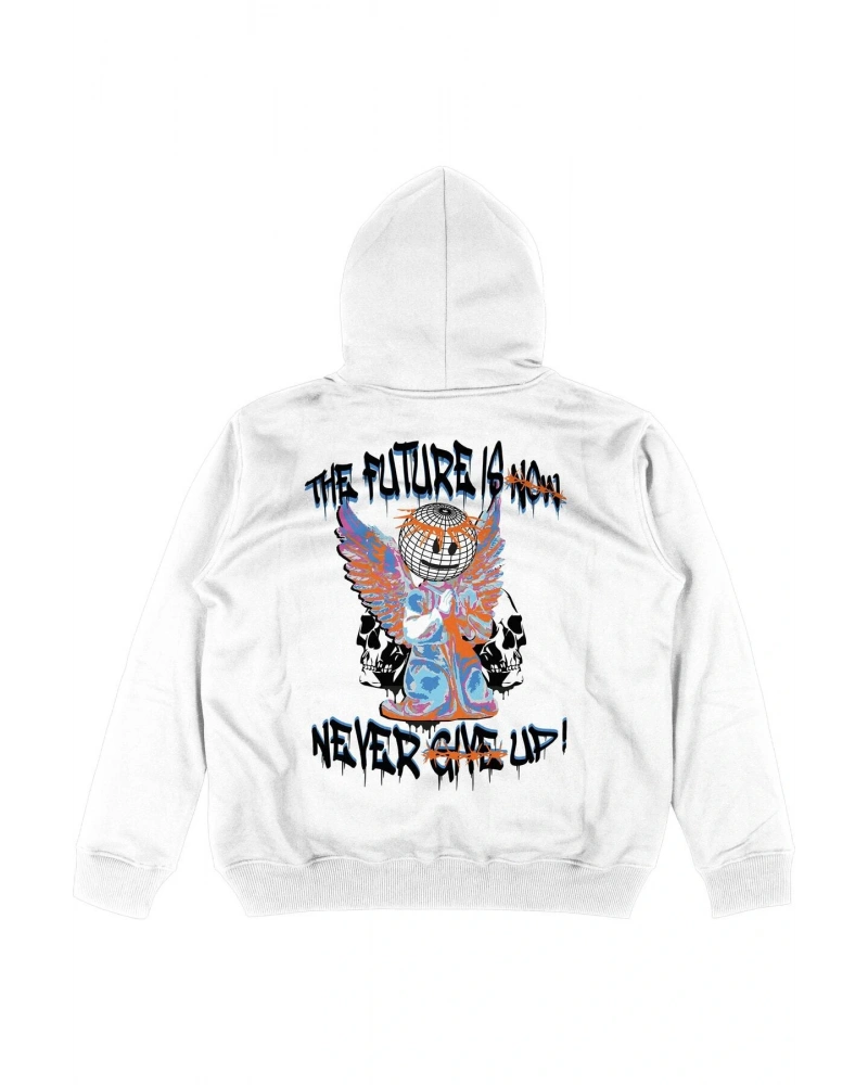 Never Give Up Beyaz Oversize Unisex Kapüşonlu Sweatshirt Hoodie