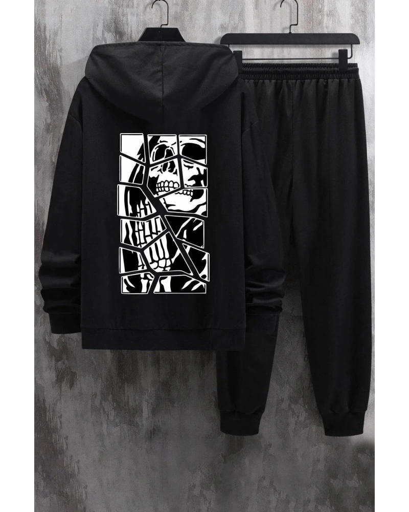 NEW MODA Unisex Skullcracked Baskılı Eşofman Takımı KP-SİYAH-DECCAL-ESH-DÜZ12