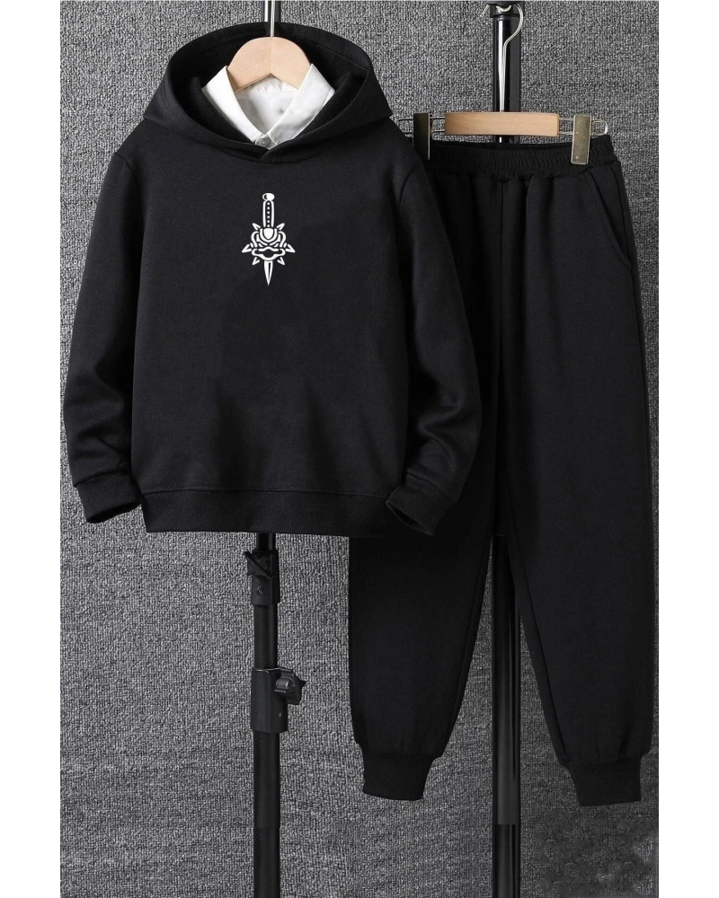 E harfli 2 li Kapşonlu Eşofman Takımı