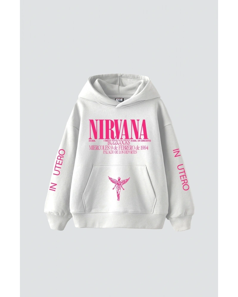 Nirvana In Utero Pembe Baskılı Oversize Unisex Beyaz