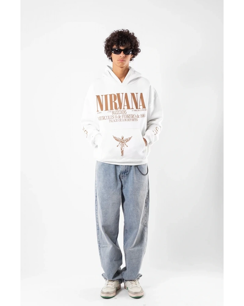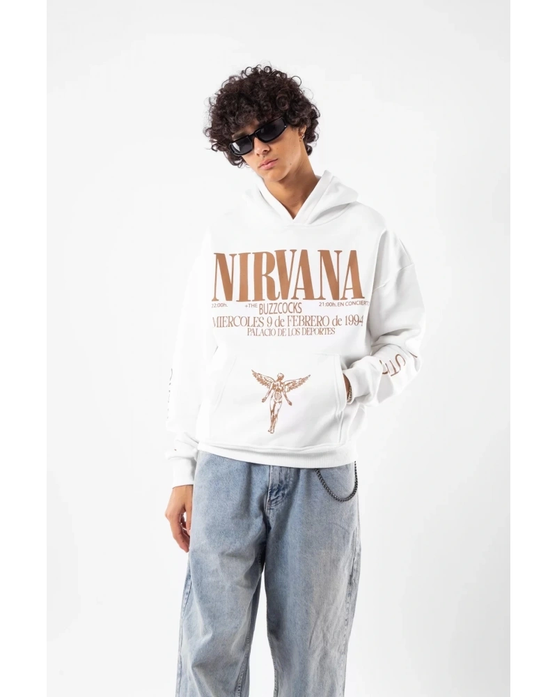 Nirvana Sırt Baskılı Unisex Oversize Beyaz