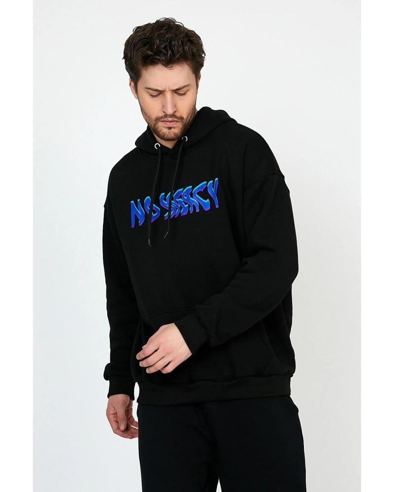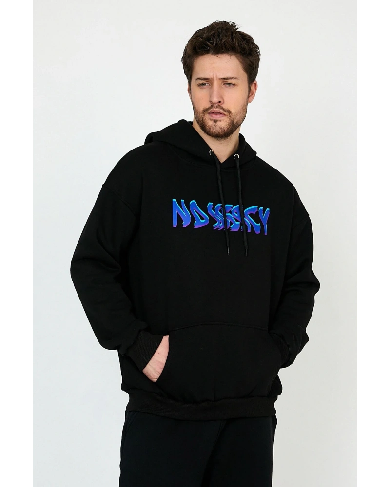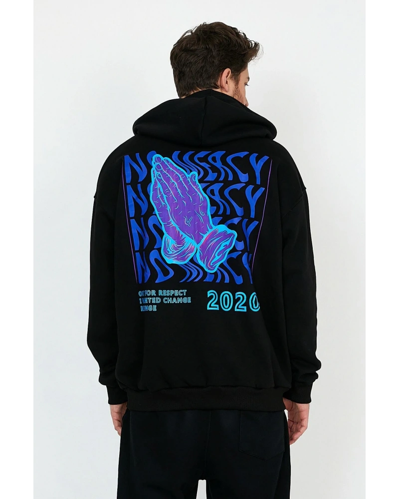No Mercy Siyah Oversize Unisex Kapüşonlu Sweatshirt Hoodie