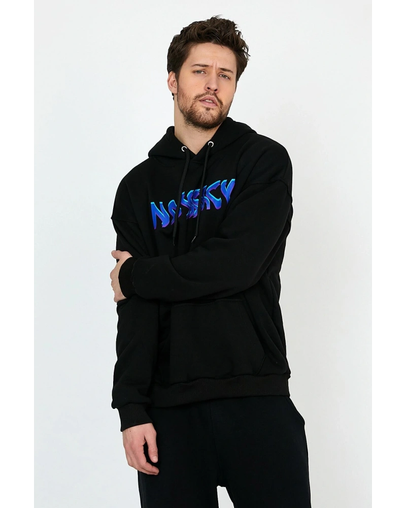 YQYQ----Oversize Basketbol Sever Tasarım Baskılı Unisex Kapüşonlu Sweatshirt Hoodie Siyah