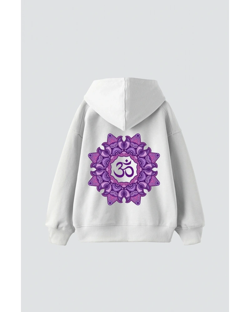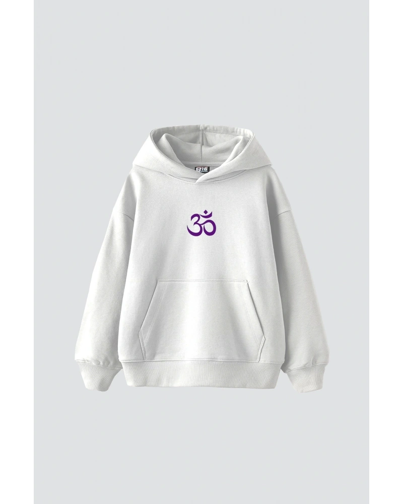 YQYQ----Oversize Mor Saçlı Lila Genç Kız Tasarım Baskılı Unisex Kapüşonlu Sweatshirt Hoodie Beyaz