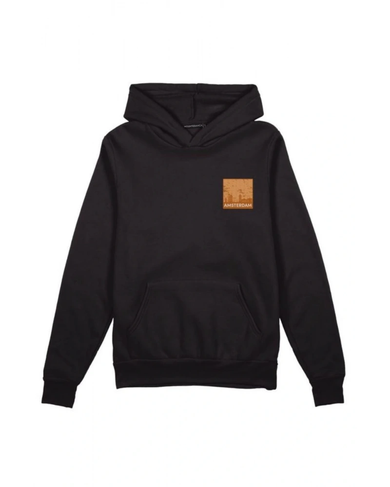 Oversıze Sıyah Amsterdam Baskılı Kapşonlu Kanguru Cepli Unisex Pamuklu Sweatshirt Siyah