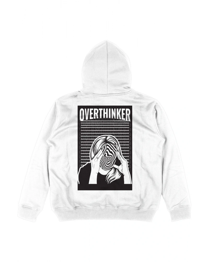 Overthinker Beyaz Oversize Unisex Kapüşonlu Sweatshirt Hoodie