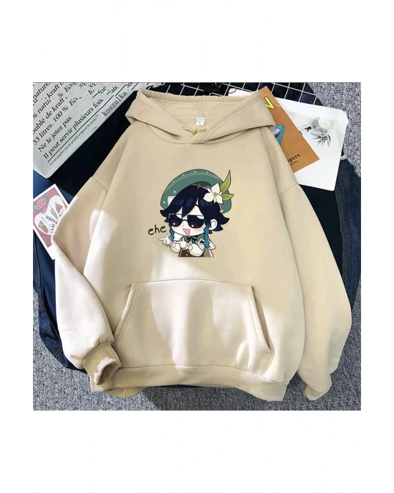 YQYQ----Oversize Mor Saçlı Lila Genç Kız Tasarım Baskılı Unisex Kapüşonlu Sweatshirt Hoodie Beyaz