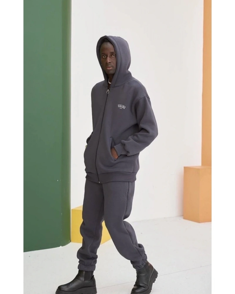 Özel Tasarım Kapüşonlu Tam Fermuarlı Valırı Baskılı Kışlık Oversize Erkek Eşofman Takımı