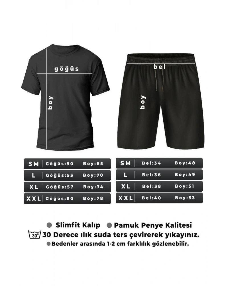 3'lü Unisex Şort-eşofman Altı-tişört Slim Fit Messi Baskılı Takım Kombin Alt Üst MES