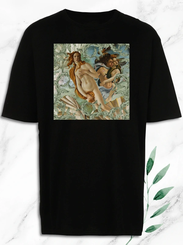 Oversize Mitoloji Güzellik Tanrıçası Venüs Baskılı Siyah Tişört