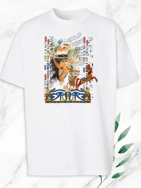 Unisex Beyaz Oversize Antik Mısır Egypt Baskılı Tişört