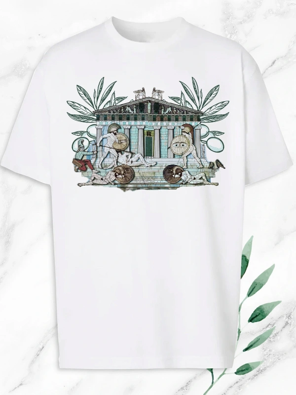 Unisex Beyaz Oversize Mitoloji Antik Kent Baskılı Tişört