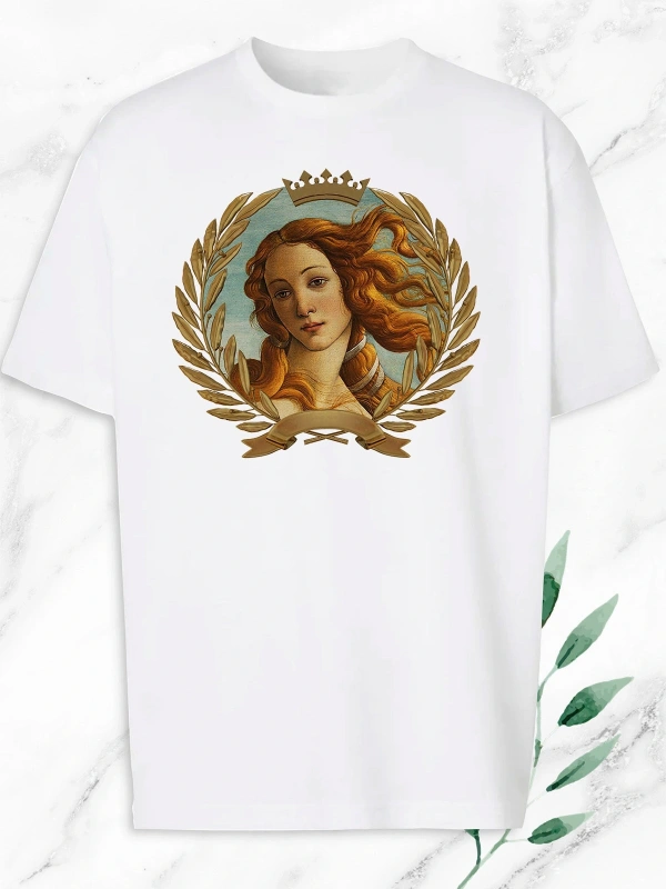 Unisex Beyaz Oversize Mitoloji Güzellik Tanrıçası Venüs Heykel Baskılı Tişört