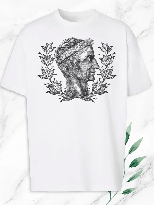 Unisex Beyaz Oversize Mitoloji Jül Sezar Heykel Baskılı Tişört