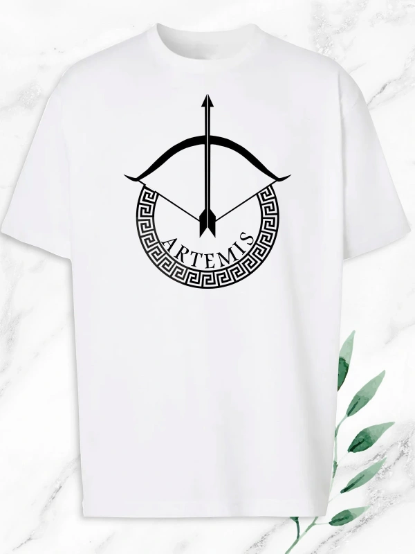Unisex Mitoloji Ay Tanrıçası Artemis Baskılı Beyaz Tişört