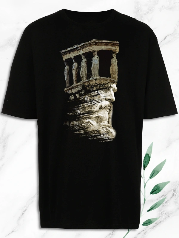 Unisex Siyah Oversize Mitoloji Metafizik Filozof Heykel Baskılı Tişört