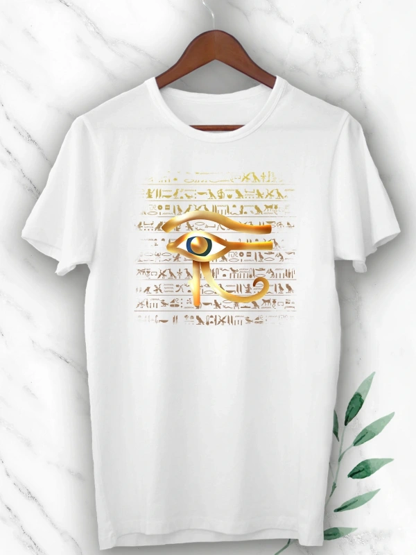 Antik Mısır Horus'un Gözü Baskılı Beyaz Unisex T-Shirt