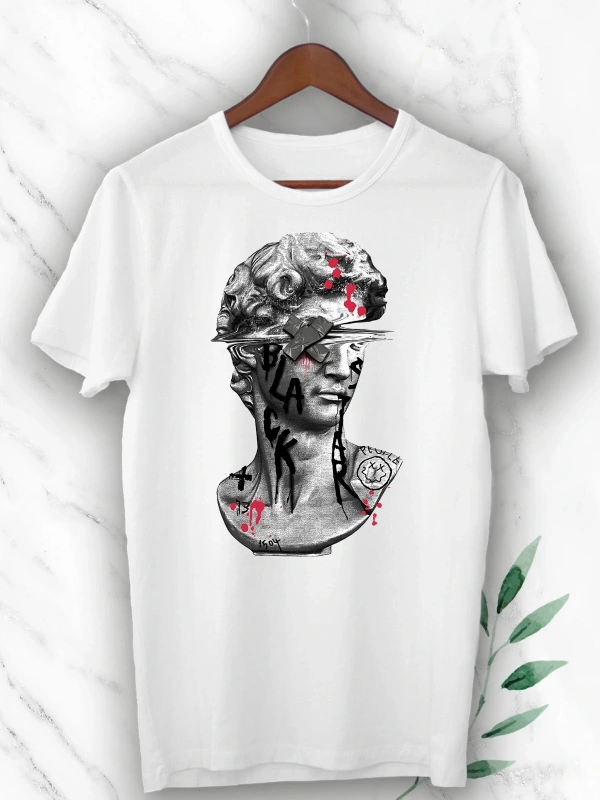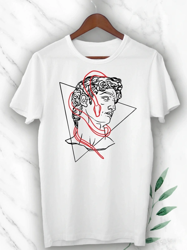 Mitoloji David Heykel Baskılı Beyaz Unısex Tişört