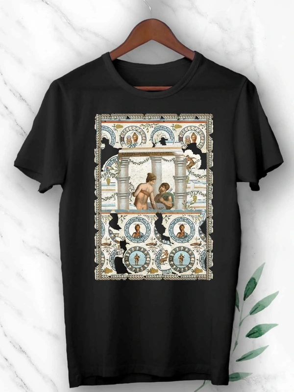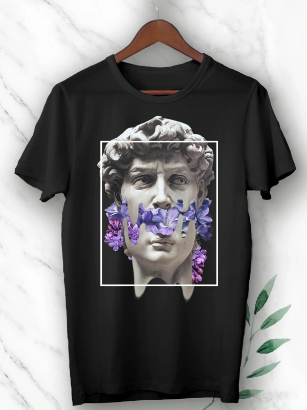 Mitoloji Heykel Baskılı Siyah Unısex Tişört