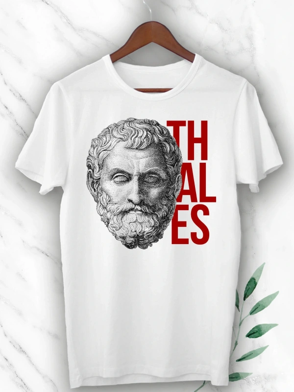 Mitoloji Yedi Bilgenin Ilki Matematikçi Thales Baskılı Beyaz Unısex Tişört